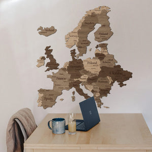 3d Europe Wooden Maps is made of high quality wood( birch plywood and finer wood), with flawless engravings. It is an amazing piece of wall decor for any interior: minimalistic, meaningful and really inspiring! A great gift for both travellers and those, who love staying in. It is detailed and precise.