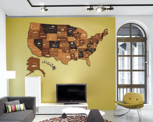 The map perfectly fits to office interiors, living rooms, halls, teenager’s room, and other places. No doubt, the wooden map will become an eye-catching part of the interior at any place.
