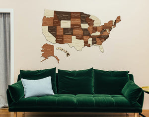 The map perfectly fits to office interiors, living rooms, halls, teenager’s room, and other places. No doubt, the wooden map will become an eye-catching part of the interior at any place.