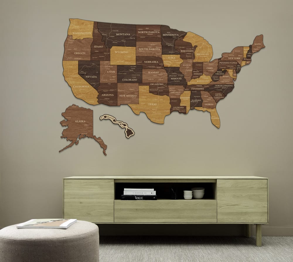 3D LED Germany Wooden Map - Walnut & Wenge - JustLikeWood