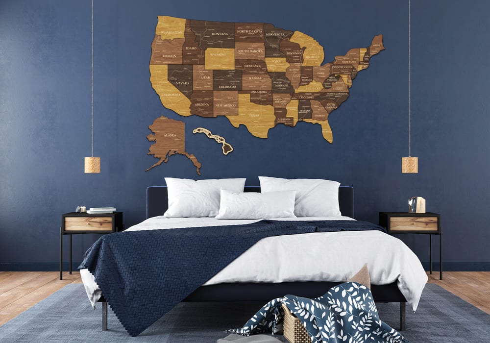 3D Wooden World Map (Perfect World) - Blue & Grey
