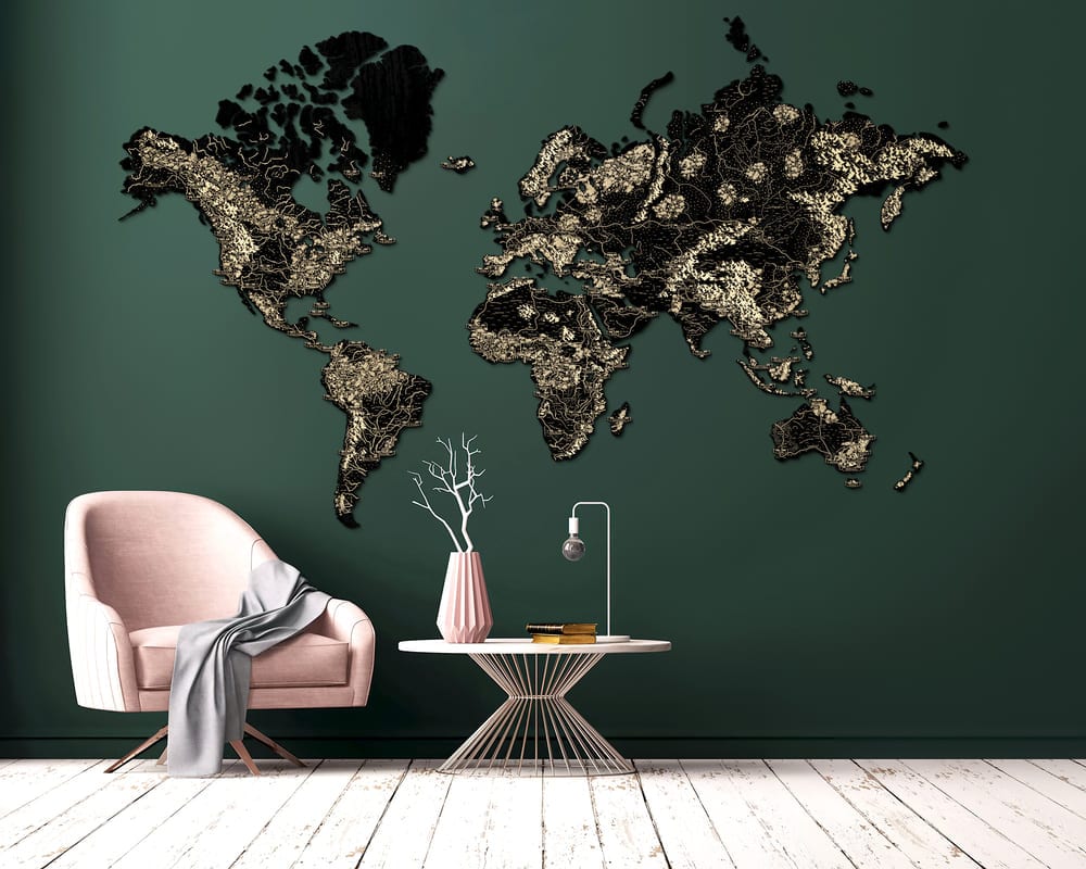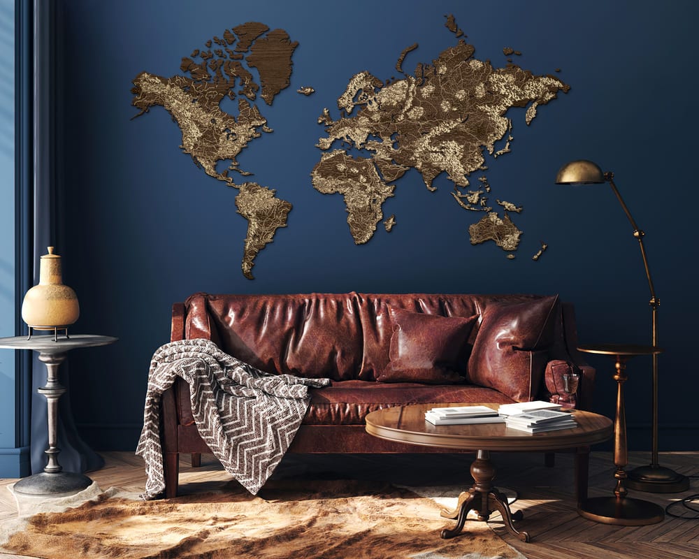3D Wooden World Map (Standart) - Walnut & Wenge
