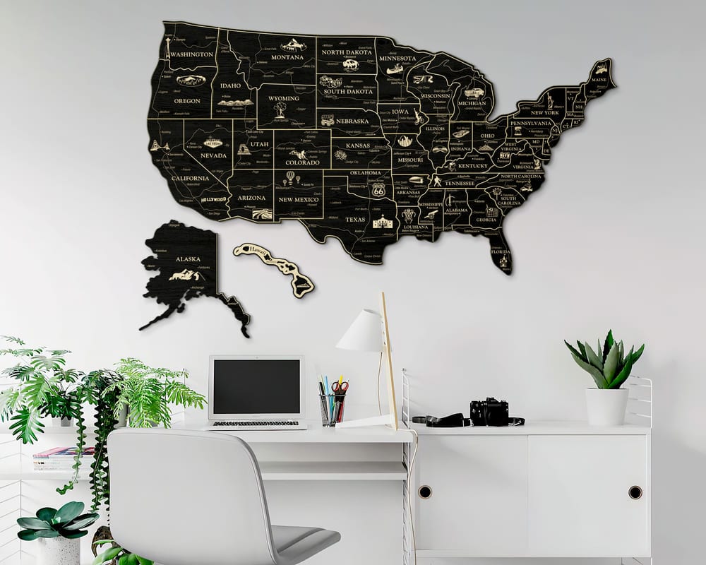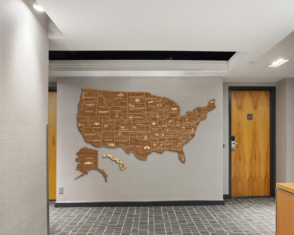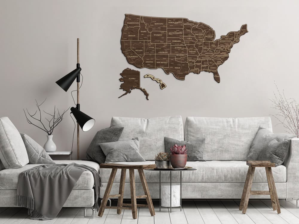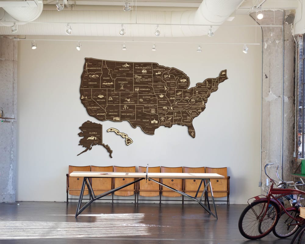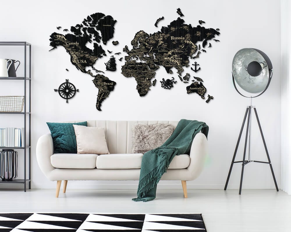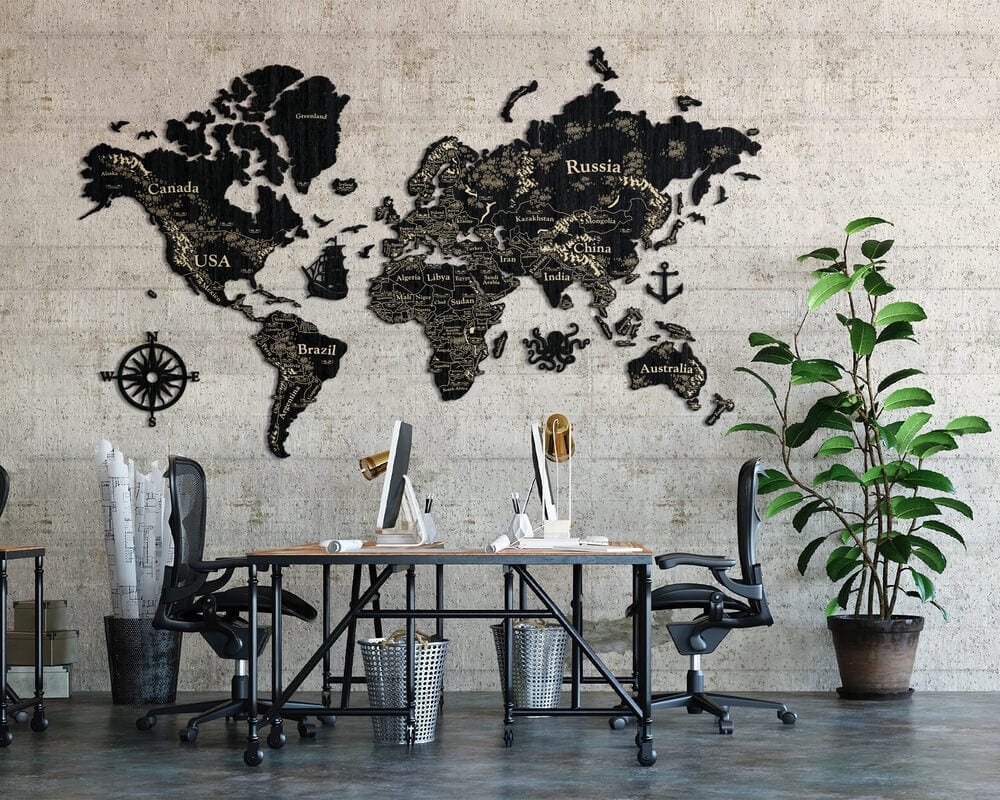 2D Wooden World Map (Perfect World) - Dark Walnut