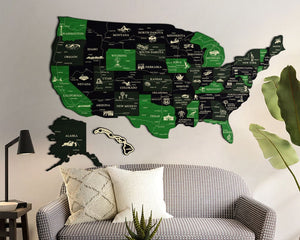 ● Wooden 3D Map of the USA with States Borders, Names, and Capitals